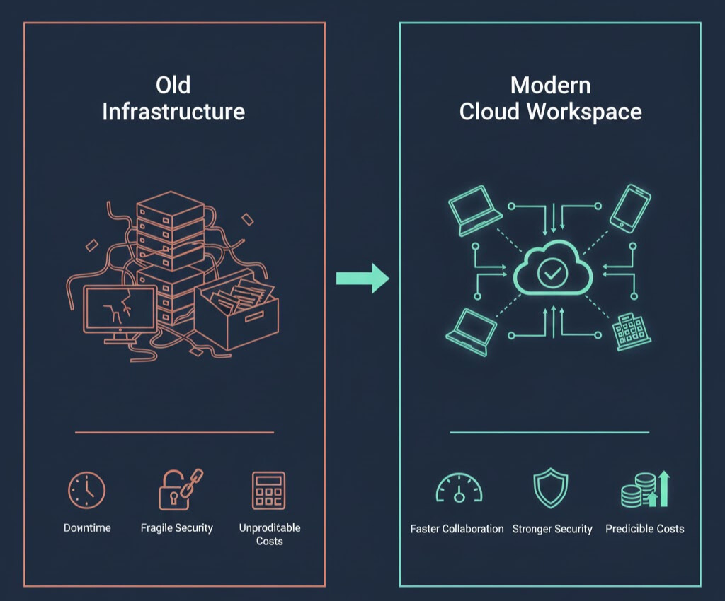 Cloud services aren’t just about moving files online. They’re about building a reliable environment where your staff can work from anywhere, scale storage and apps without stress, and keep data protected even when devices fail or threats hit.