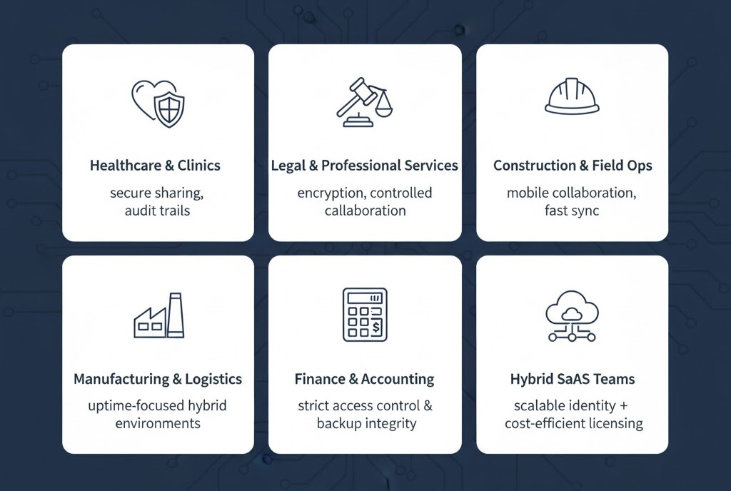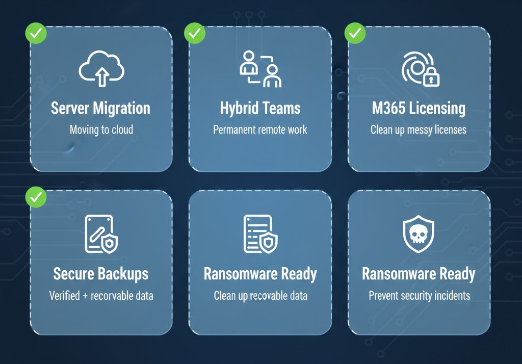 We help teams that need modern cloud operations but don’t want trial-and-error IT. Most clients are 10–250 users, often with compliance needs, remote staff, or multiple site locations across the state.