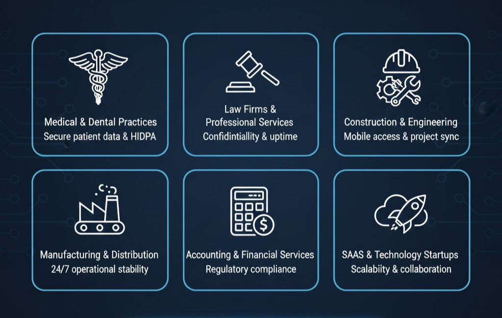 Raleigh’s economy is a mix of established organizations and fast-moving teams healthcare practices, law firms, tech startups, construction companies, logistics and finance. They all rely on stable networks, secure data, and quick answers when something breaks.